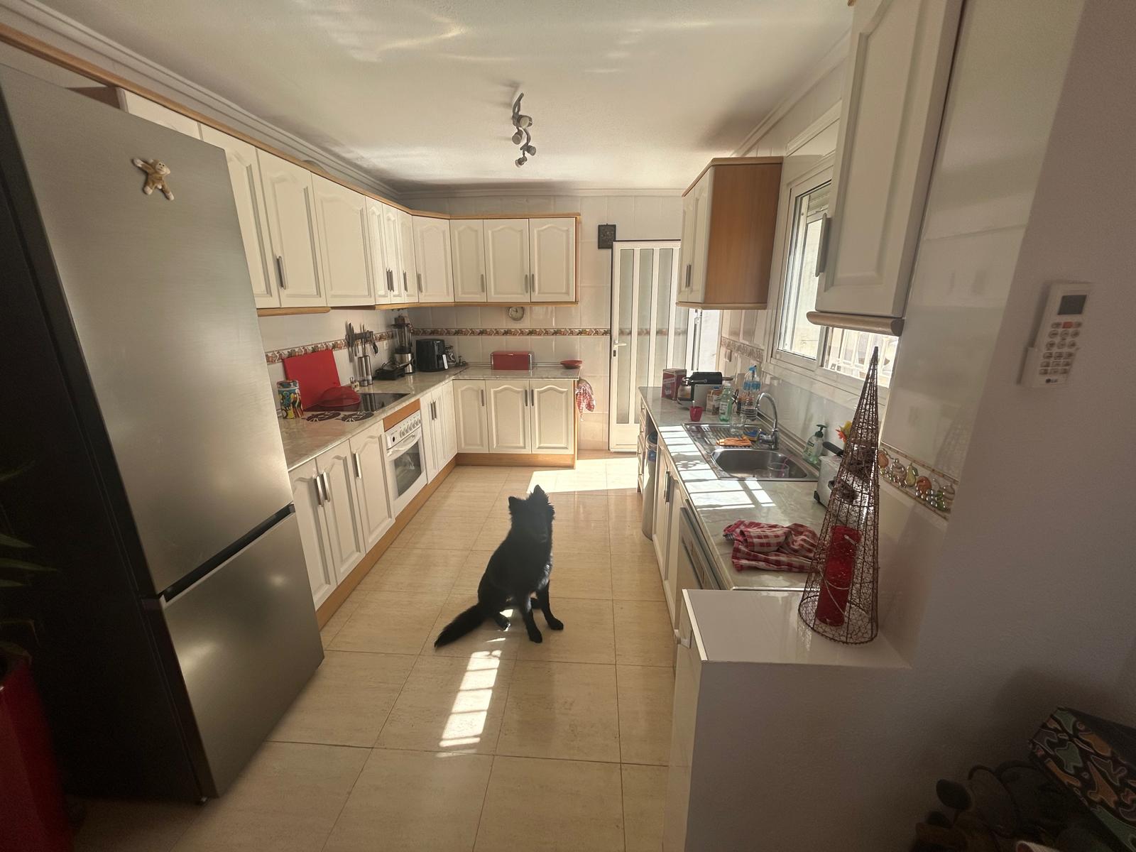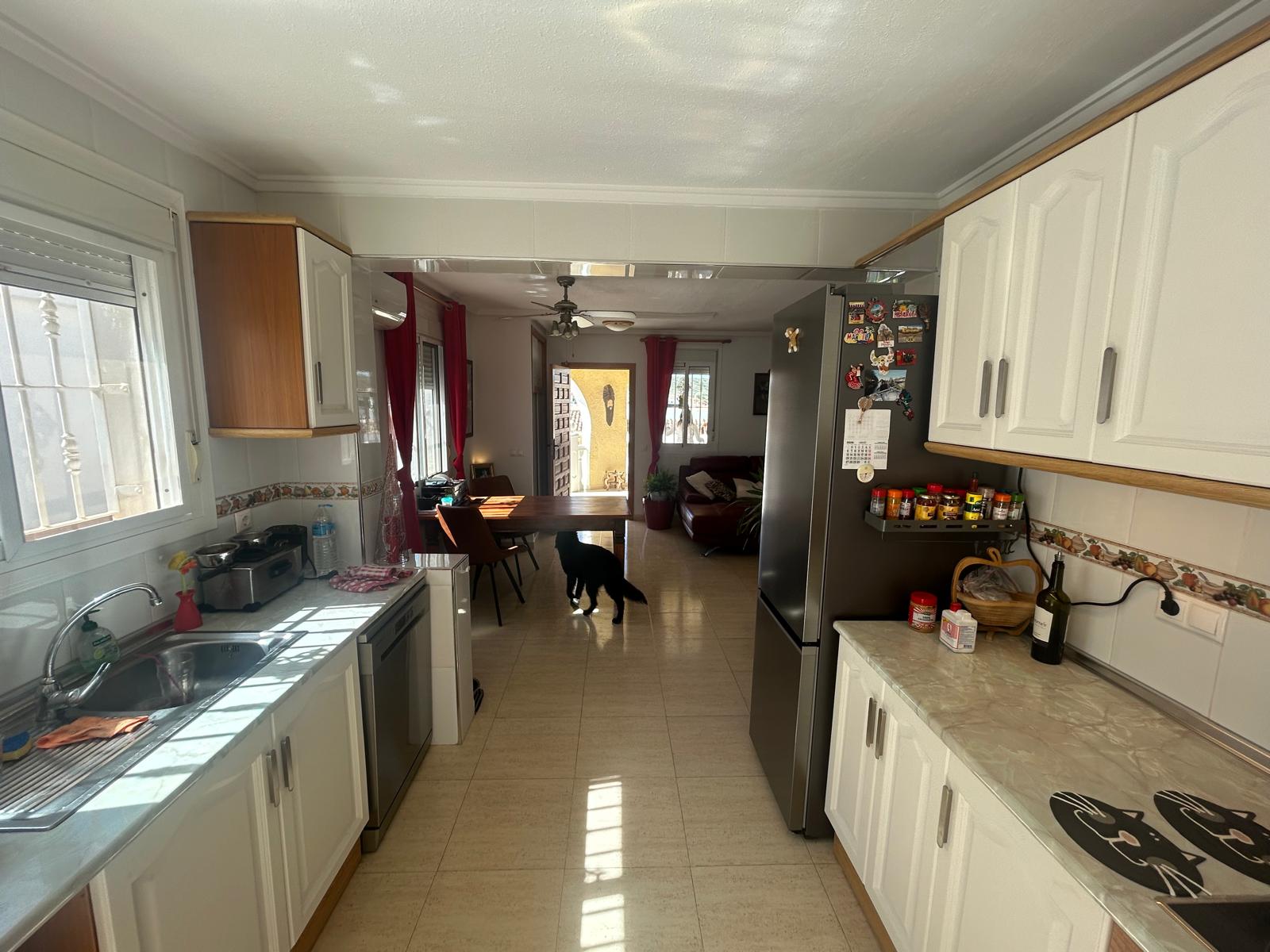 As you enter the property, you are welcomed by a spacious 14 m² covered naya (porch), ideal for relaxing or dining outdoors. Inside, the villa features a bright and airy living room with a cosy fireplace, seamlessly connected to a fully fitted open-plan kitchen equipped with modern appliances, including a dishwasher.
